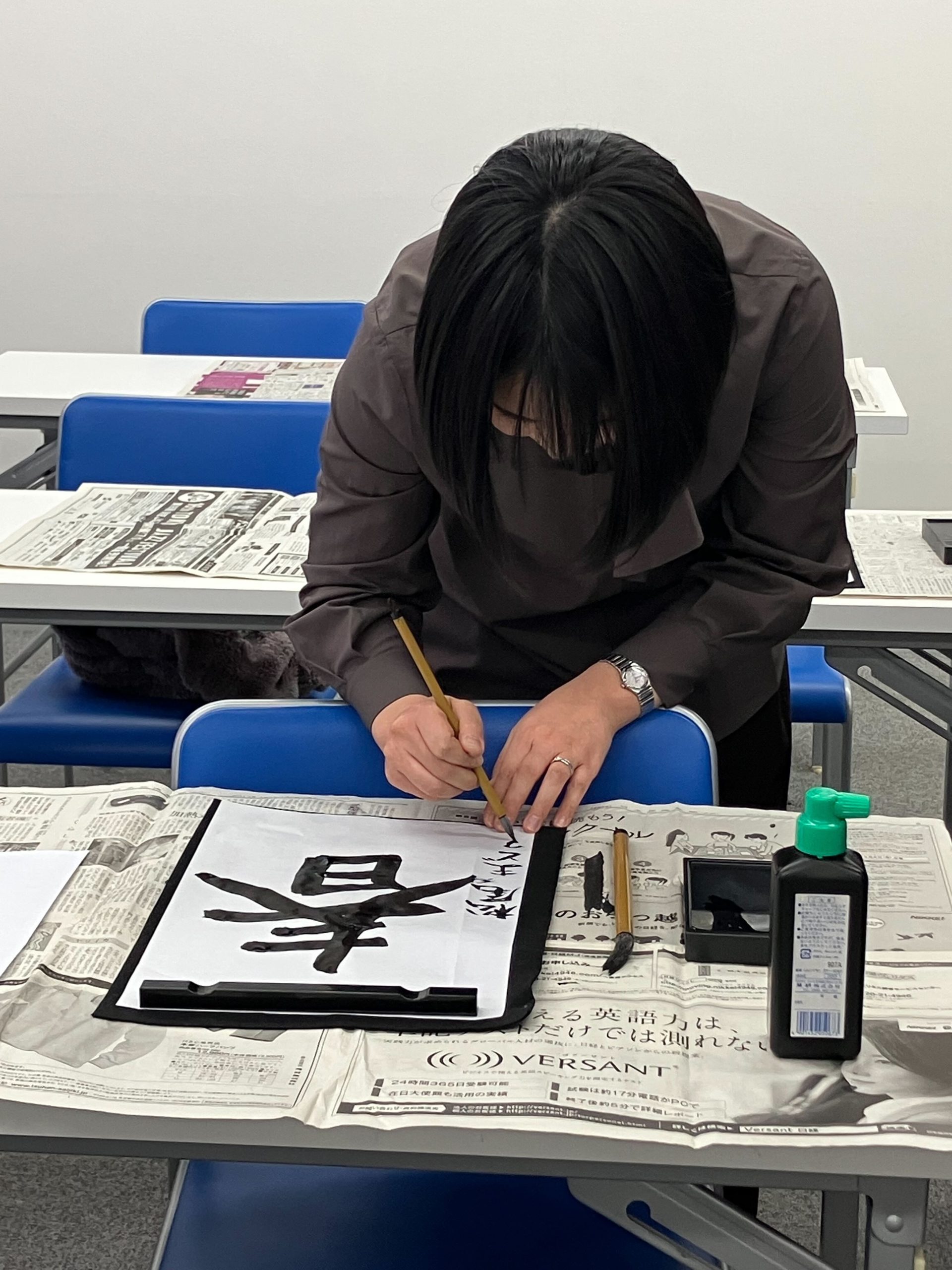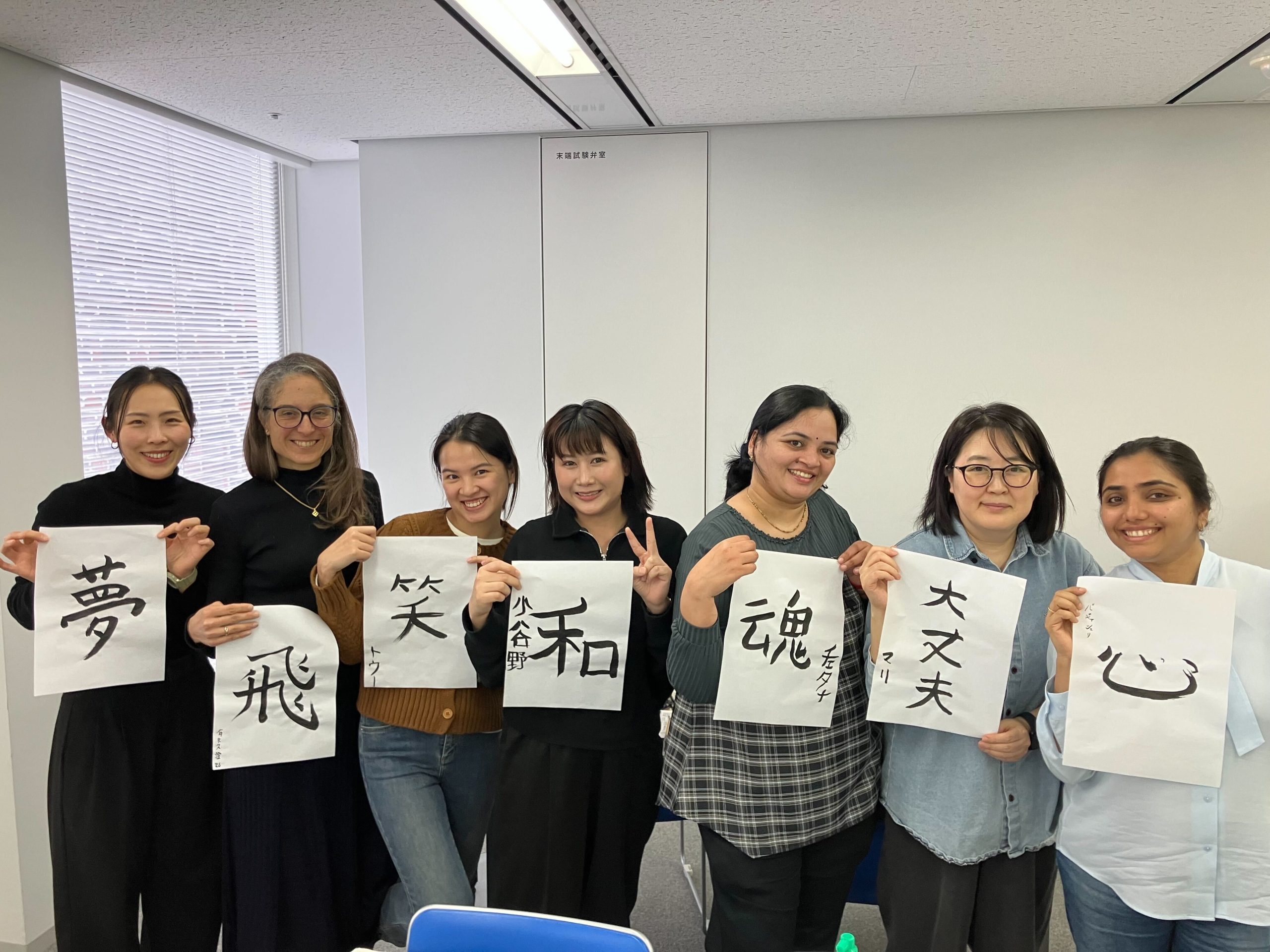 Поскольку мероприятие проходило в течение сезона Рисшун В начале весны участники сначала практиковались в написании иероглифа «Весна» (春). Затем им предлагалось выбрать и написать иероглиф, имеющий для них личное значение. Были выбраны такие иероглифы, как «Цвет» (色), «Солнечный свет» (陽), «Эволюция» (進化), «Воздух» (空気), «Связь» (縁), «Улыбка» (笑), «Сердце» (心) и «Всё в порядке» (大丈夫). В комнате царила теплая атмосфера, пока каждый участник тщательно и многократно практиковался в написании выбранного иероглифа. Их целеустремленность и сосредоточенность произвели сильное впечатление.